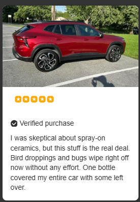 3 IN 1 Ceramic Coating: An ultra-smooth, hydrophobic surface. Watch water and dirt bead up and roll off. Maintains a stunning shine for months.